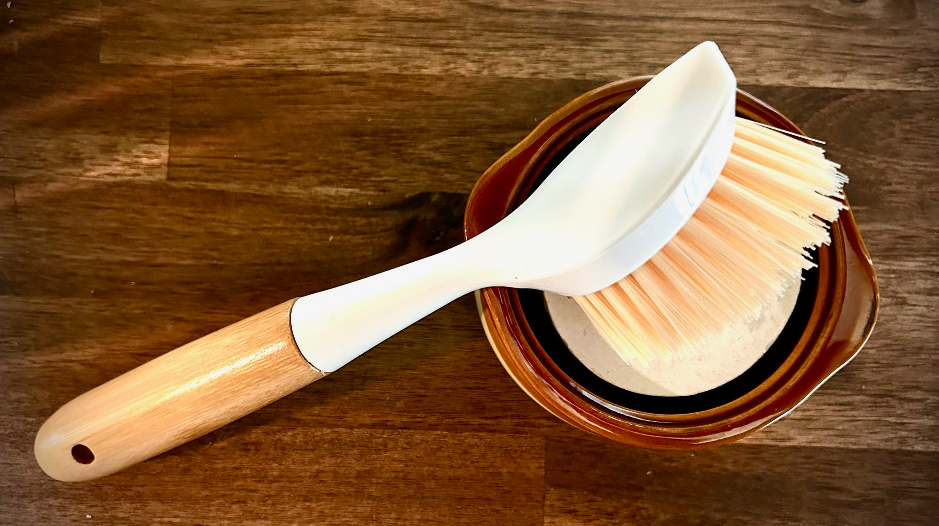 - Your choice of brush: the larger bamboo-handled scrubber for tackling big pots and pans with ease, or the smaller natural-bristle brush for precise, gentle cleaning on delicate dishes.